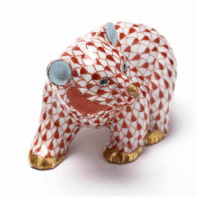 Rust fishnet, 15348 panda (5 in.), 15361 seated (3 1/2 in.) and walking 15362 (2 1/4 in.). With backstamps.