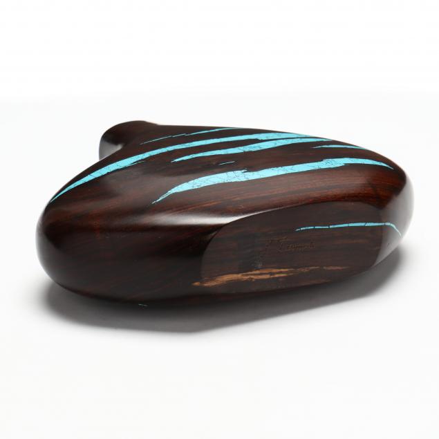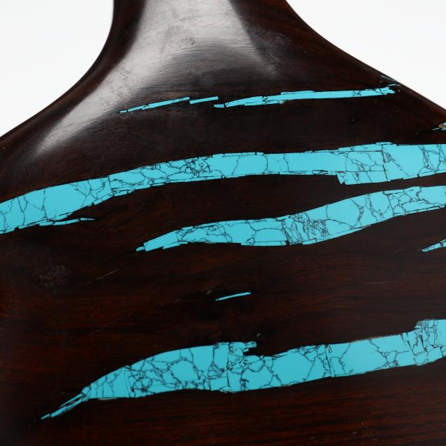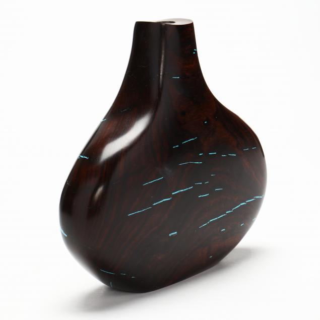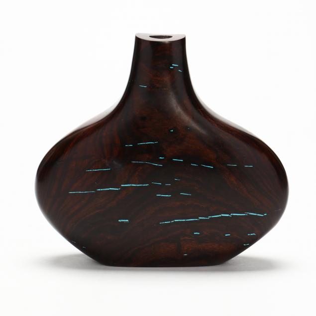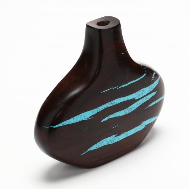 An Artisan Turquoise Inlaid Wood Vase by Lawrence Favorite