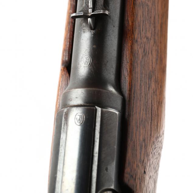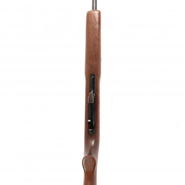 Serial number 14366 on left side receiver, 22 in. blued barrel with fixed front sight, adjustable rear sight and marked WINCHESTER / TRADE MARK / MADE IN U.S.A. / MODEL 77 - 22L. RIFLE, walnut stock with original butt plate, one detachable magazine with 10 rounds.
