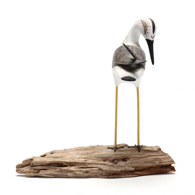 From the Collection of a Gentleman, Winston Salem, North Carolina This yellowlegs is a true masterwork by one of Core Sound's finest carvers. Homer was the first featured carver at the Core Sound Decoy Festival. He carved regularly with Alvin Harris as they worked at Menhaden camps together. This decoy incorporates applies raised cross wings.