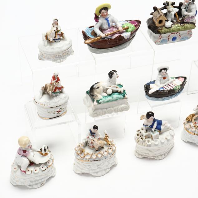 Mid 19th century, covered boxes with figural lids, generally children or animals, marked with a shape number in some cases.