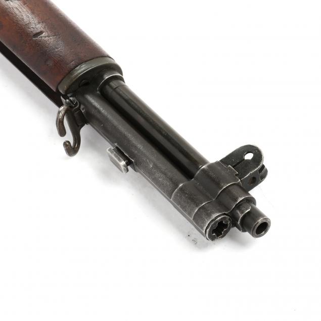 Serial number 3633787 marked on the top of receiver, 24 in. barrel with fixed front sight and adjustable rear sight, receiver marked US RIFLE CAL 30 M1 SPRINGFIELD ARMORY, walnut stock with SA NFR cartouche, Ordnance Dept. Acceptance cartouche and circled P firing proof under grip, metal butt plate with butt trap maintenance kit which includes dual reservoir oiler, M3 combination tool and pull through tool, canvas sling.