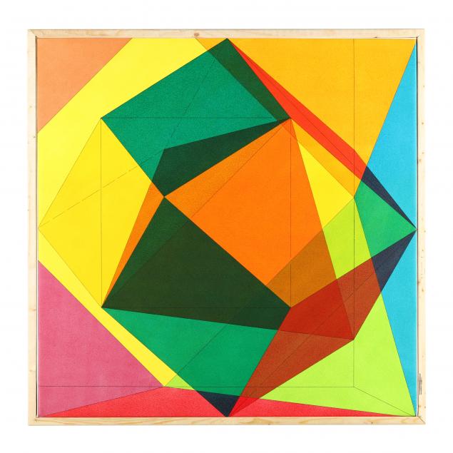 Hiigli's transfixing geometric paintings synthesize the teachings of Jean Piaget and Richard Buckminster Fuller. He endeavors "to create certain images of totality, images that are optical and energetic—not a 'signal' or transmitter, or point of reception of 'something else'—but objects, states of mind, visions that stand for what they are in and of themselves."