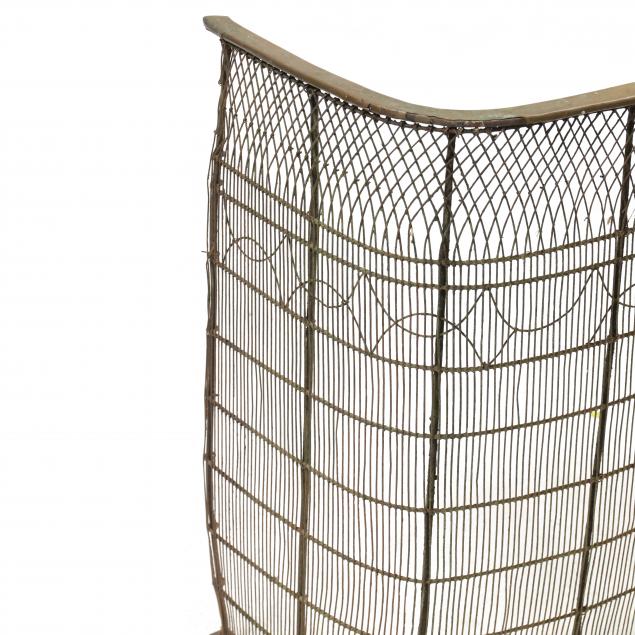 19th century, brass capped top, tall wire-work with interwoven Gothic arches and diamond motifs, flush iron base.