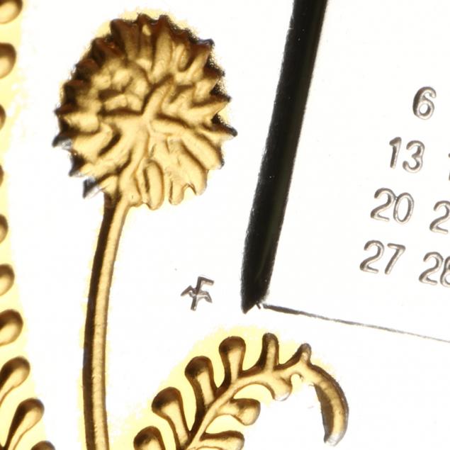 3-inch double-sided bas-relief medallions with monthly calendar for 1996, XRF tested pure silver with gold plating, unmarked, includes (5) signed Certificates of Authenticity, (5) black acrylic display plinths, and (2) fitted cases.