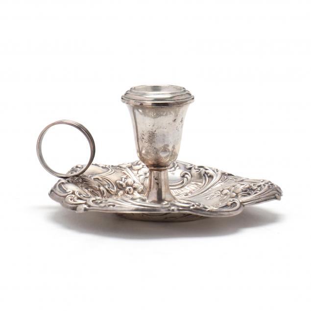 Pattern number 342, leaf form with repousse scrolled foliated decoration and reeded handle, without a mongram.