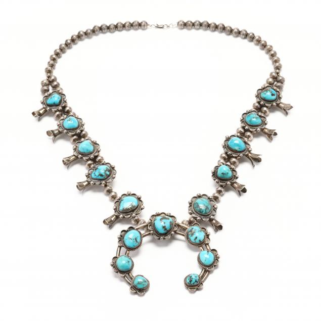 Southwestern Silver and Turquoise Squash Blossom Necklace