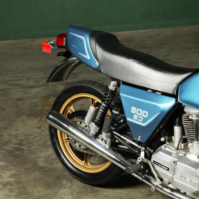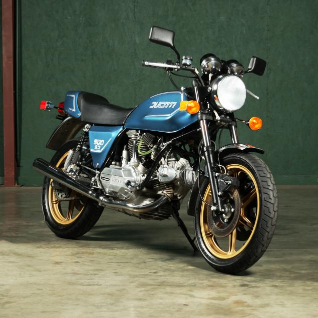 In original unrestored condition and finished in blue with silver accents, and chrome fenders and trim. This is the last year, and of the last units built with an engine number 906686 and manufactured date of 4/83. with the original gold alloy FPS wheels marked DUCATI, with older Dunlop tires.