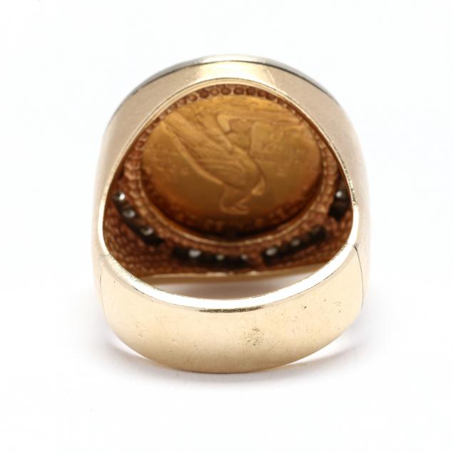 1925 $2.50 coin with halo of full cut round diamonds weighing approximately .84 total carats (I-J color, SI1-SI2 clarity), stamped 14K.