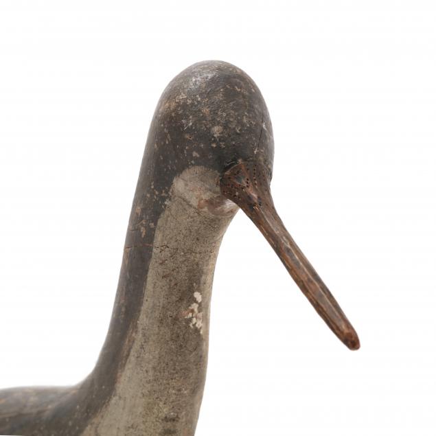 Eastern Shore Virginia, circa 1900, carved and painted wood, hard wood bill splined through the back of the head, MACKEY Collection stamp.