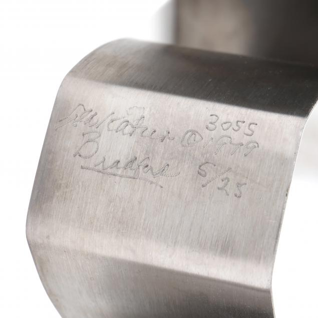 Born in 1932, in Brooklyn, Katzen began studying painting at the Art Students League. She continued her studies and earned a BFA at The Cooper Union, New York City. Katzen later attended the Hans Hoffman School of Art in New York and Provincetown, MA. An accomplished painter, in 1955, Katzen had her first solo exhibition at the Baltimore Museum of Art. In 1962, Katzen accepted a position at the Maryland Institute, College of Art—she remained on the faculty until 1980. An encounter with renowned sculptor George Segal in 1964 prompted Katzen to focus her attention on sculpture, and she became interested in Minimalism. Her sculpture, Liquid Tunnel, comprised of light and fluorescent liquid, for the 1970 Sao Paulo Biennale won her international attention. During the early 1970’s, Katzen moved away from the philosophies of Minimalism, and instead, chose to create works that encouraged human interaction. This decision led Katzen to push stainless steel and aluminum to creative heights in the 1980s and 1990s—resulting in works that were not only aesthetically striking, but laden with meaningful content relevant to society and humanity. Katzen passed away on September 20, 1998 in New York City.