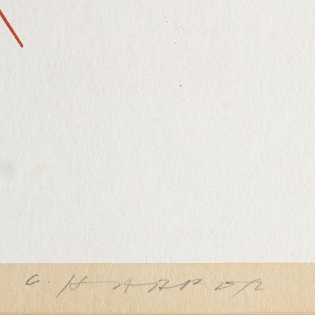 Serigraph in colors, 1973, signed and numbered at lower margin, matted and framed under glass.