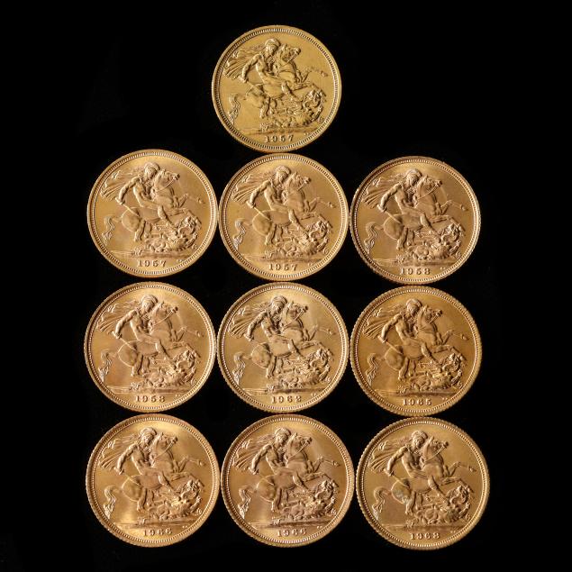 Great Britain, Ten (10) Queen Elizabeth II Gold Sovereigns