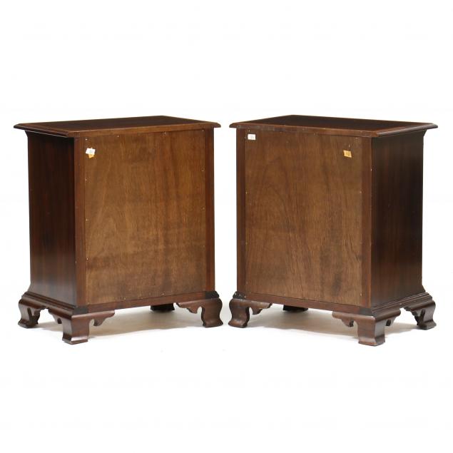 Late 20th century, top and drawer fronts with banded wood inlays, four drawers, fluted quarter columns, ogee bracket feet, labeled.