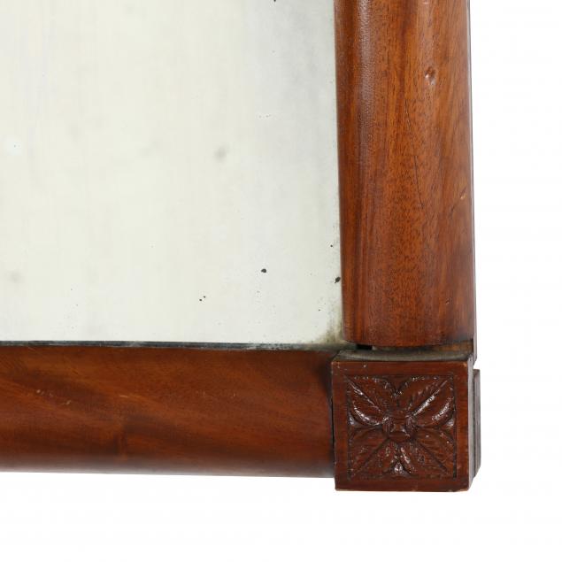 The posts appear to be old and original; however, the panels and rails are later; with patches to the posts at joints; the mirror once part of a dresser, with scuffs to the corners.