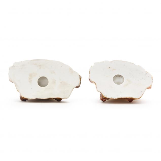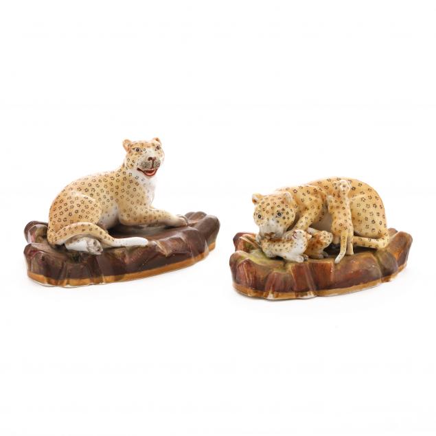 First half 19th century, attributed to Derby, each group resting atop a naturalistic terrace with gilt edge border.