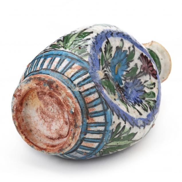 From a Private Collection, Washington, D.C. Turkish vase with loss at rim and large glaze flake; the Persian vessels with allover crazing to the glaze, the bottle with a loss at the rim.
