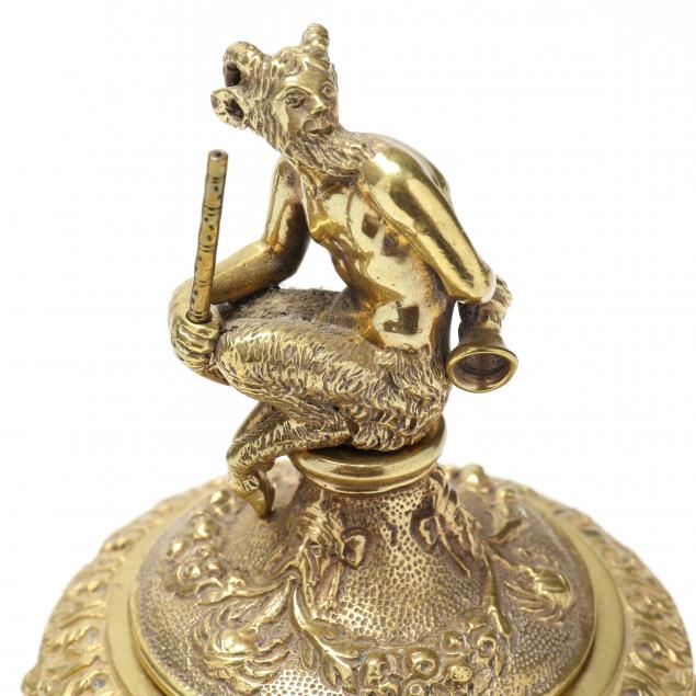 Early to mid 20th century, the first a brass inkwell figuring pan, urn form with figural mask and garland mounts, raised on paw feet (6 1/2 in.); second, a pair of French Empire style bronze putti statuettes, each carrying floral baskets, mounted atop gray marble terraces, unmarked (8 1/4 in.); and a vintage bronze clad bust of "Diana of Versailles," marked to verso (6 3/4 in.).