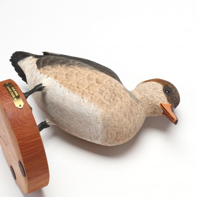 Harkers Island, North Carolina, circa 2006, carved and painted wood, glass eyes, incised feather detail, mounted on wooden pedestals inscribed FRANK S. MOORE / H.I. / 2006.