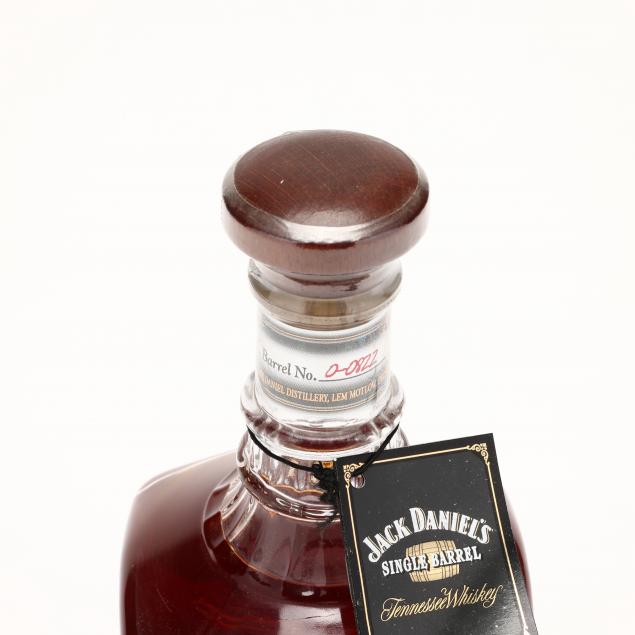 NV, Jack Daniel's Single Barrel Tennessee Whiskey, Lynchburg, 47%, 4-19-00 bottling, hs, rick no. R-03, barrel no. 0-0822, signed in 2006 by Master Distiller Jimmy Bedford (#6), includes hanging tag, sealed glass decanter (1 750 ml)