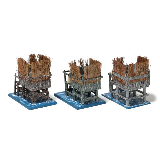 Harkers Island, North Carolina, circa 2011, mixed wood, craft materials, pine needles, signed BY HOUSTON LEWIS / H.I. / 11-08-2011 on bottom.