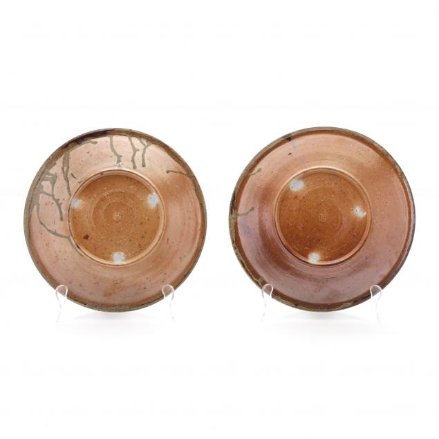 Ten pieces to include: (4) plates (10 3/4 in.) made by Hewitt 1984-1995 and two bowls, one with the impressed mark "10" for 10th anniversary 1994 and (4) mugs also impressed "WMH 10", 1994 (4 in.).