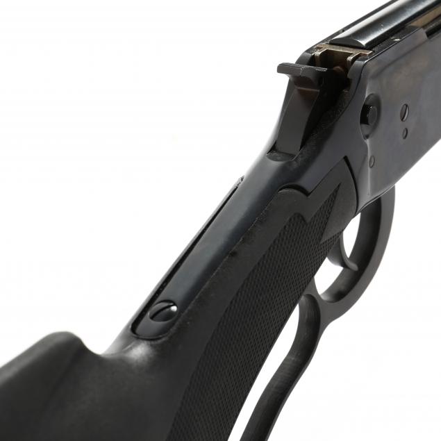Serial number 6348573 on bottom of receiver, 23.5 in. blued barrel marked WINCHESTER / MODEL 94AE / CAL 30-30 WIN. / MADE IN NEW HAVEN, CONN. U.S.A. WINCHESTER PROOF STEEL with hooded fixed front sight, adjustable rear sight, checkered synthetic stock and forend, cross-bolt safety, adjustable nylon sling.