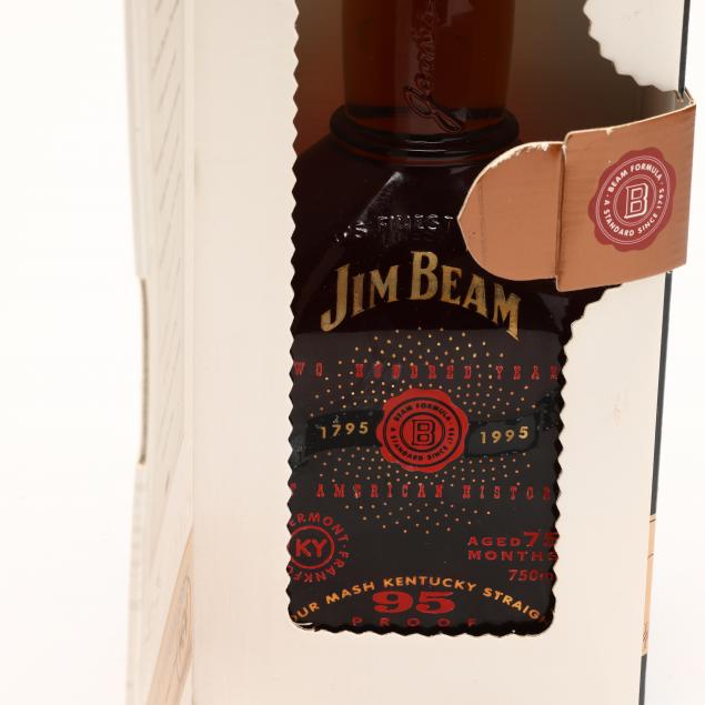 NV, Jim Beam Kentucky Straight Bourbon Whiskey, 200th Year Anniversary, Limited Edition, 75 Months Old, Frankfort, KY, 47.5%, 1995 bottling, into neck, sealed commemorative decanter, ocb (1 750 ml)