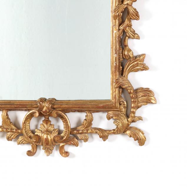 Second half 20th century, carved and gilt wood frame with rectangular mirror, pierced and carved foliate surround.