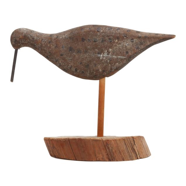 This finely carved and painted dowitcher was typical of the decoys found in Alvah Hamilton's decoy stand after his death. It is carved in the feeding position. Julian Hamilton, Sr. inherited Alvah's decoy stand after his death.