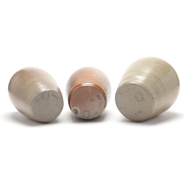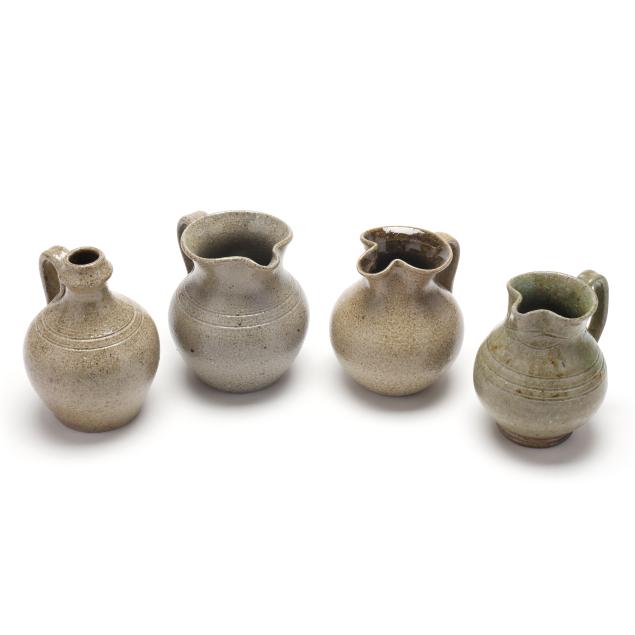 20th century, (16) pieces to include: (4) tumblers (4 1/2 in.) (2) jugs and (2) pitchers all with Jugtown impressed stamp. a large jug with stamp "C.B.Craven" (9 in.), a jug with glass run (10 in.), (2) small pitchers, all marked by Vernon Owens; a vase (8 1/2 in.) and (3) small pieces made by Pamela Owens.