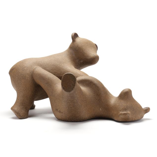 John H. Seymour (American, b. 1920), Stoneware Sculpture of Two Bear Cubs