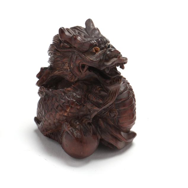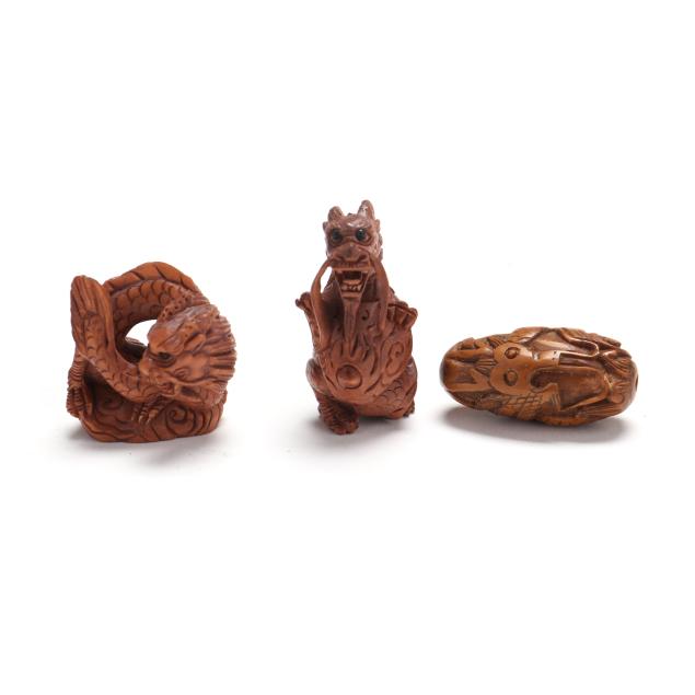 20th century, each in the form of a dragon, (3) with inset glass eyes, (2) signed.
