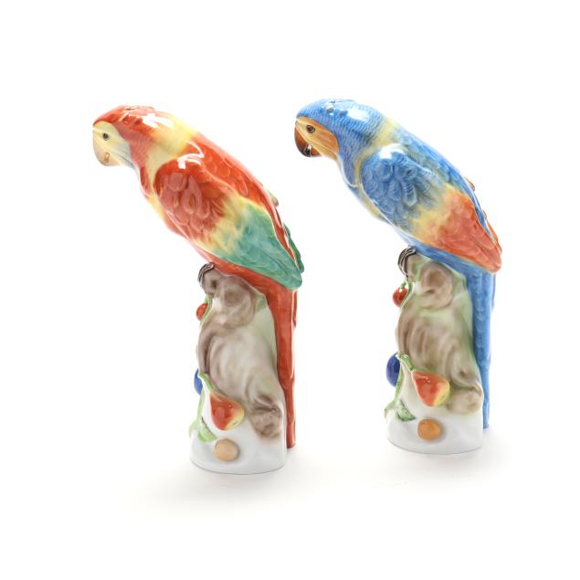 Pair of Herend Natural Porcelain Parrot on Branch Figures
