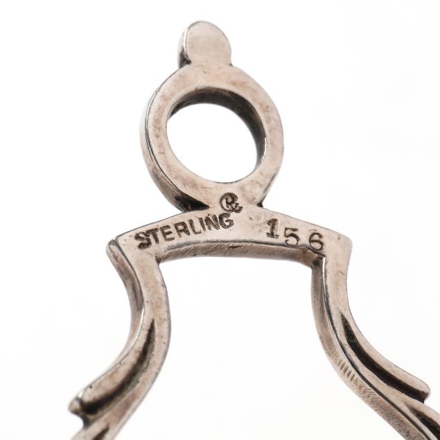 Includes a pair of knife rests with mark of Lunt Silversmiths, pattern number 287, in the form of andirons; a pair of knife rests with mark of Goodnow and Jenks, dolphin form footed ends; a tea ball stand with mark of Simons Brothers, pattern number 550, monogrammed "M. R. H. B."; a sugar sifter with mark of Currier & Roby, pattern number 156; and a milk jar with mark of Meriden Britannia Co., pattern number 33, fitted with an opaque glass insert with mark of Maclaren's Roquefort Cheese, reticulated form; all but the tea ball stand without monograms.