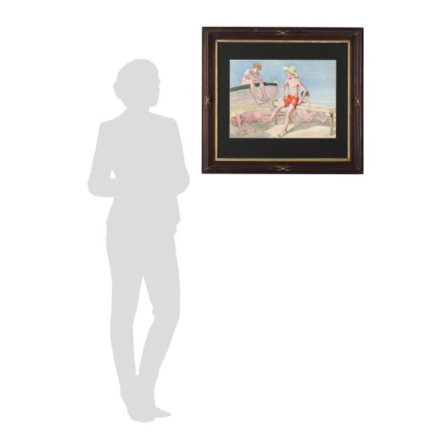 Watercolor on paper, 1933, signed and dated at lower left, matted in a parcel gilt frame under glass.