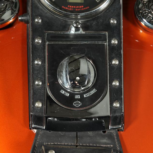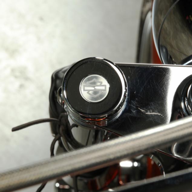 With a twin cam 88 cubic inch V-Twin engine with what appears to be a Screamin Eagle Bolt-On 110 Cubic Inch Street Performance Kit, and a five-speed manual transmission. With S&S Performance parts added, as well as Performance Machine brakes.