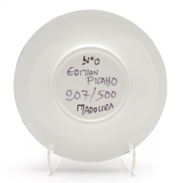 Glazed white earthenware plate painted in colors, 1963, numbered 207/500, inscribed 'Edition Picasso Madoura' and 'No 0' to underside, alternate title reads