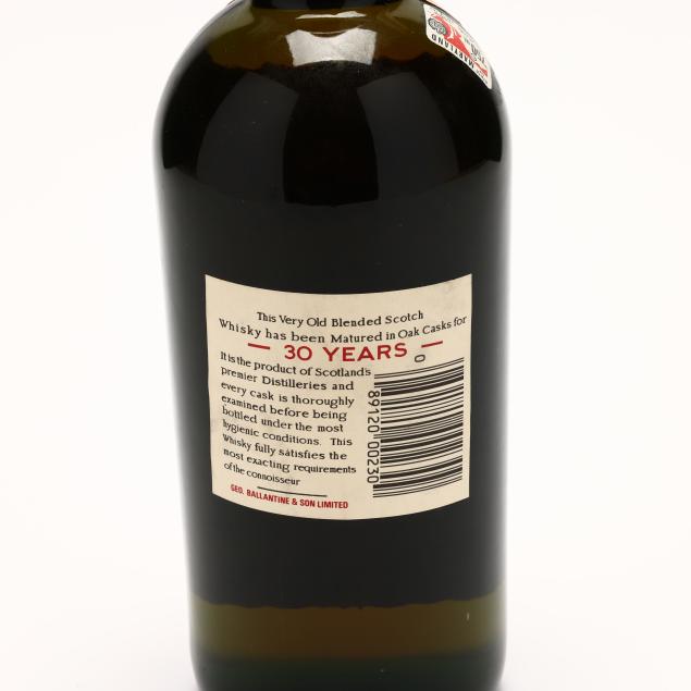 NV, Ballantine's Very Old Blended Scotch Whisky, 30 Years Old, George Ballantine & Son, Limited, Dumbarton, Scotland, 43%, 1983-1985 bottling, into neck, sealed (1 750 ml)
