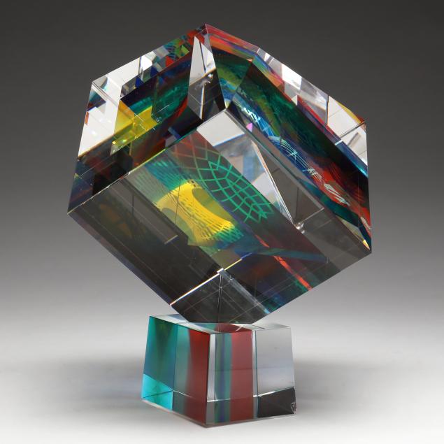 2005, number 401, laminated crystal with faceted edges and mounted to a crystal block, marked to underside.