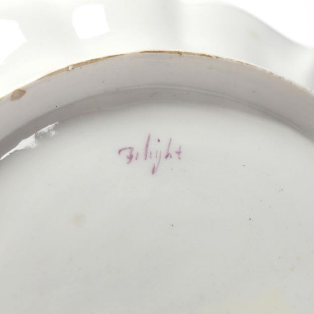 A shaped Flight Worcester porcelain dish (1783-1792), Bishop Sumner patten, after a design of a Chinese famille verte pattern of the Kangxi period, decorated in bright enamels with a narrow border and inner panels of flowers, birds, and animals, the central panel illustrates a mythical creature and a flying dragon in a landscape (8 1/4 in.). The second porcelain is attributed to 19th century Coalport, a small tray depicting a tiger lurking behind bamboo (9 in.).