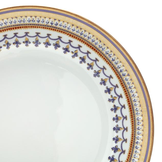 From the Collection of Wayne Morrison, Chapel Hill, North Carolina Light wear to gilt, occasional cutlery scratches, one bread & butter plate with tiny edge chip; good estate condition.
