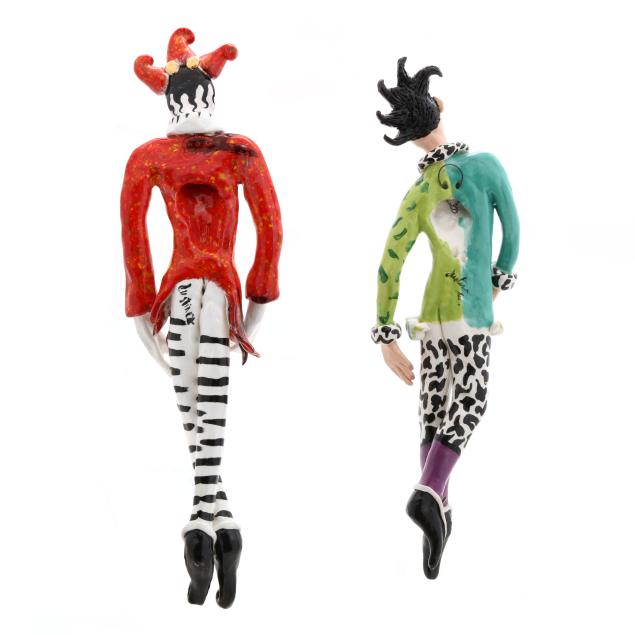 Contemporary, hand-painted ceramic figures posed in various costumes, each signed to the posterior.