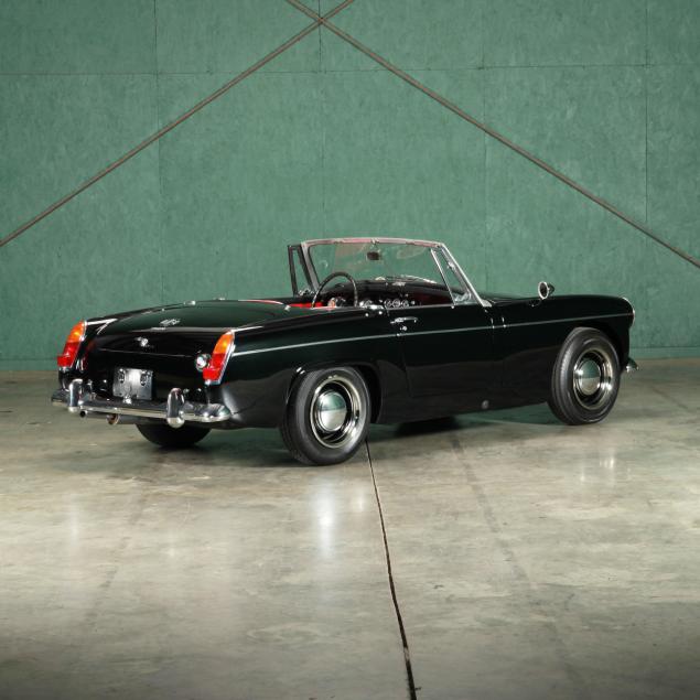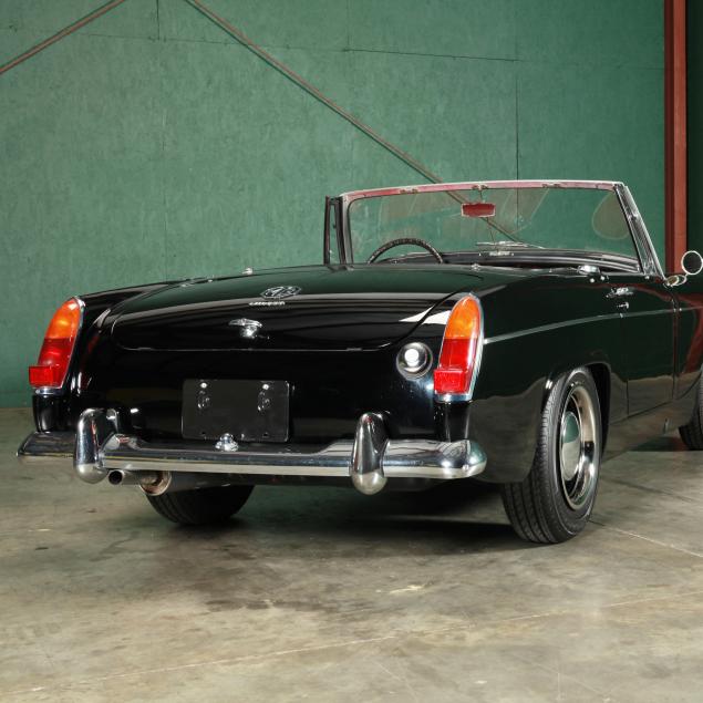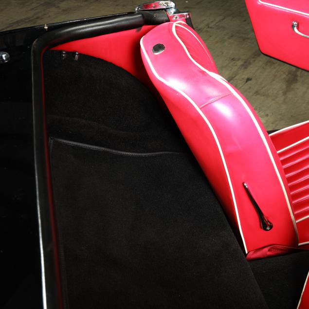 Exterior refinished in two-stage black paint in 2015 and shows remarkably well. The interior is red vinyl. A tonneau cover with rib is present. Later midget seats are installed, and the battery has been relocated behind the drivers seat under the car. The car retains the European ignition under the dash, and rear taillights. With fender mounted chrome side mirrors, and black steel wheels with chrome 'moon' style caps highlighting the original chrome bumpers and grille.