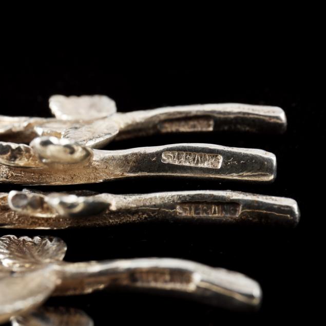 Set of Six Sterling Silver Foliate Spoons