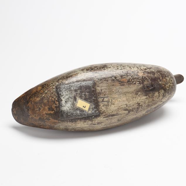 Original paint with moderate gunning wear, craquelure to surface, some missing wood at tail.