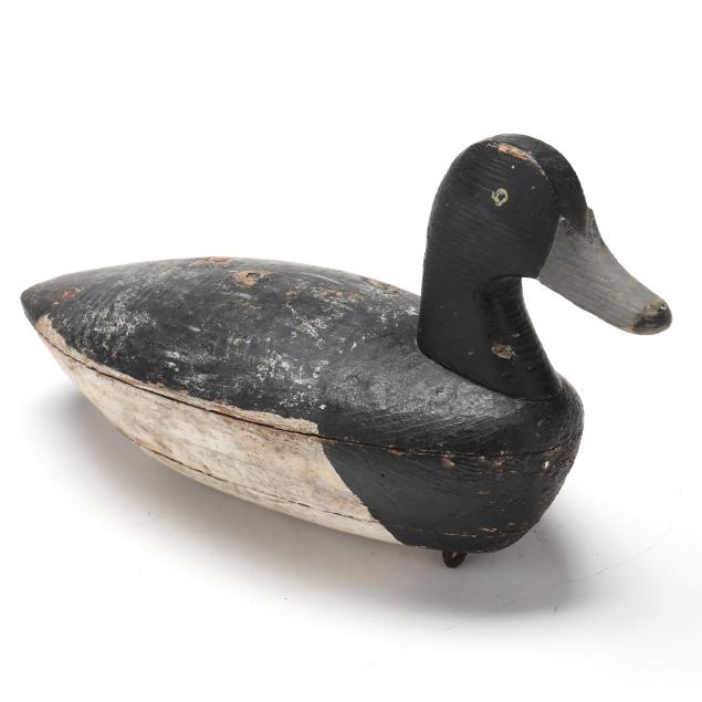 Stacy, North Carolina, circa 1930, carved and painted wood, three piece body, incised IF.