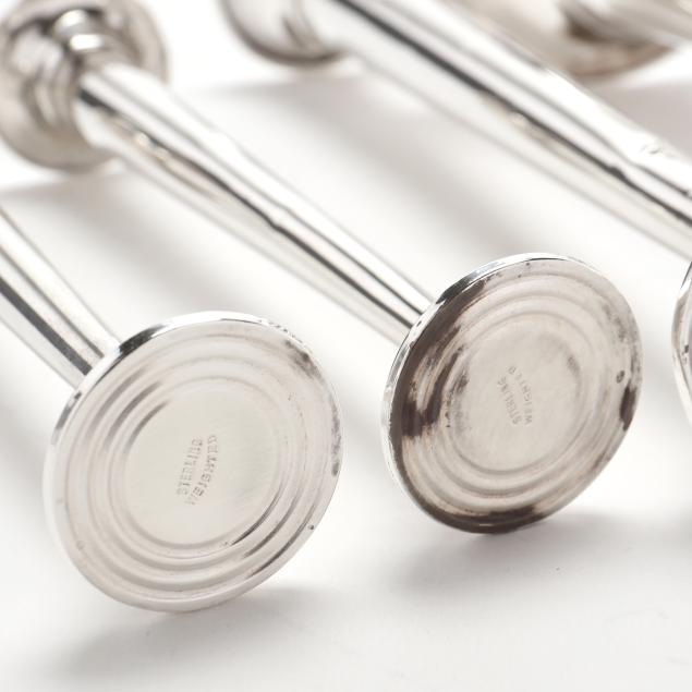 20th century, the largest with mark of Wallace (8 in.); the other six with weighted bases, makers to include (largest to smallest) La Pierre, Watson, International