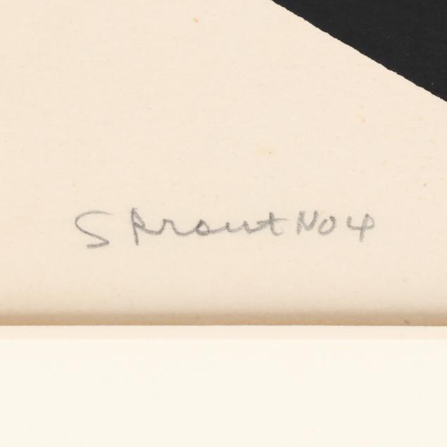 1965, hand colored lithograph with blue, black and silver pigments, pencil signed to lower right "Sprout No. 4, Toko Shinoda, 1965, A.P.," presented loose.