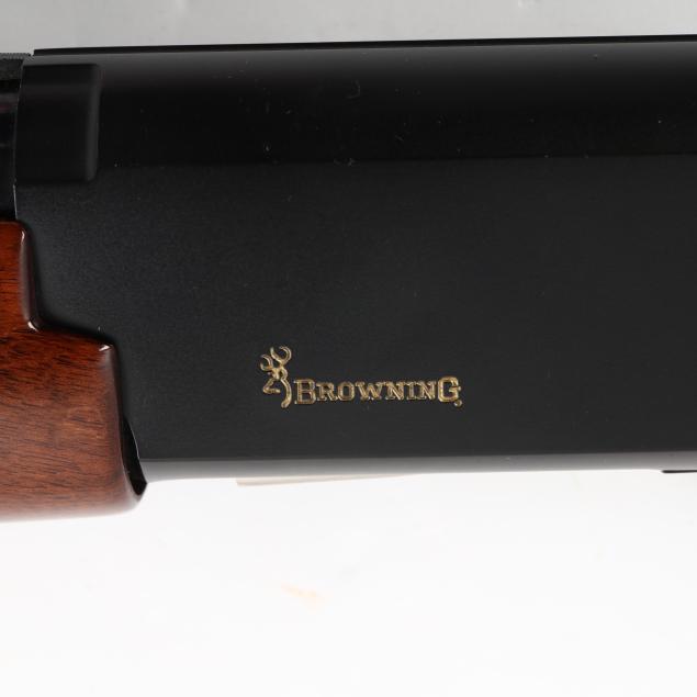 Serial number F51NT20826, 26 in. blued barrel marked BROWNING ARMS COMPANY MORGAN UTAH & MONTREAL P.Q. / MADE IN BELGIUM - ASSEMBLED IN PORTUGAL / GOLD - 12 GA. - 3" INVECTOR PLUS - 26" with ventilated rib and front white bead sight, interchangeable choke marked IC, receiver marked GOLD HUNTER on each side, checkered walnut stock and forend with rubber recoil pad.